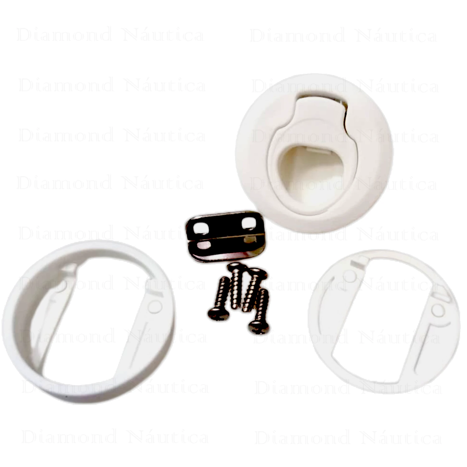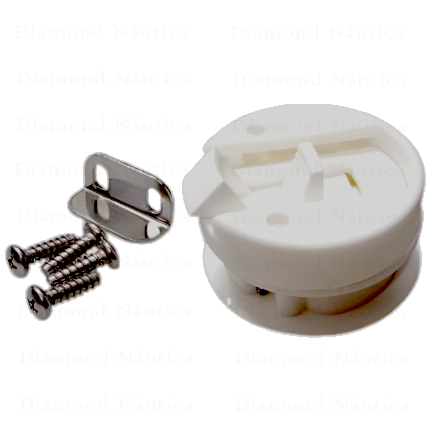 - Puxador/ Fechadura de bater para portas e tampas produzido em Plástico Injetado resistente as adversidades do ambiente marinho.
