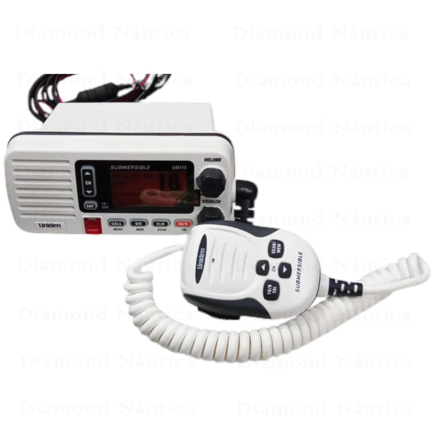 - Contém saída para alto-falante externo, chamada direta do canal 16 e alta visibilidade do display.